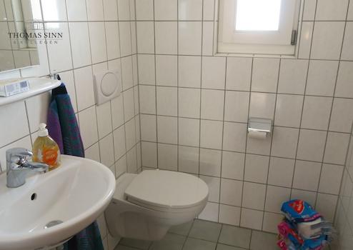 Das Tageslichtbad ist mit Badewanne und bodentiefer Dusche gut ausgestattet. Ein Waschmaschinenanschluss ist hier ebenfalls eingebaut. Im Flur gibt es eine kleine Abstellkammer sowie ein zusätzliches Gäste-WC.