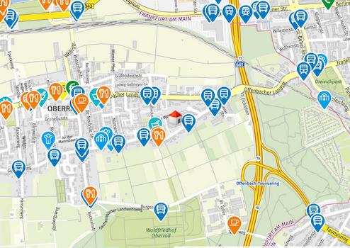 • Tram 15 (Haltestelle Flaschenburgstraße) nur ca. 300 m entfernt – direkte Verbindung nach Sachsenhausen und zur S-Bahn