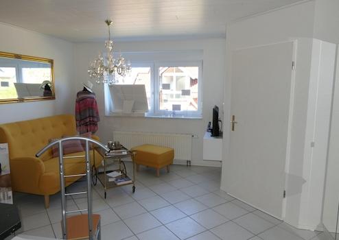 Weiterhin befindet sich im Sockelgeschoss eine 34qm Einliegerwohnung mit Separatem Eingang, kleiner Terasse und Stellplatz.