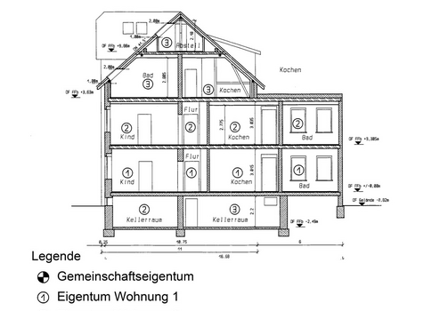 Die Wohnfläche von ca. 300 m² verteilt sich auf drei großzügige Wohneinheiten, jeweils mit eigenem Zugang und durchdachtem Grundriss auf drei Volletagen sowie ausgebautem Dachgeschoss. Zusätzlich stehen ca. 70 m² Nutzfläche im Kellergeschoss zur Verfügung.