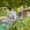 Die liebevoll angelegte Gartenanlage wurde von einem Gartenarchitekten gestaltet. Die elegante Bepflanzung sorgt für Sichtschutz.