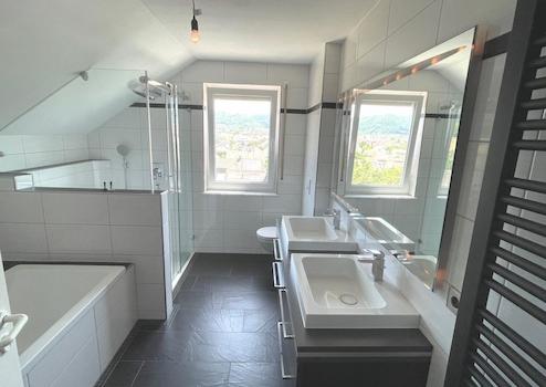 Stilvolles Tageslichtbad mit Badewanne & Dusche