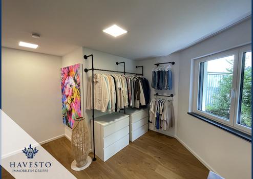 Daneben liegt ein weiteres Zimmer, das derzeit als Ankleidezimmer dient, aber ebenso gut als Kinder-, Arbeits- oder Gästezimmer genutzt werden kann.
