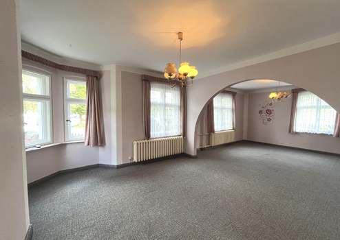 Das Einfamilienhaus wurde ca. 1924 in Massivbauweise errichtet und verfügt über eine Wohnfläche von ca. 125 m² auf einem Grundstück von 1.546 m². Im Erdgeschoss befinden sich der Eingangsbereich mit Zugang zum Flur, die Küche, ein kleines Badezimmer mit Dusche und ein großes Wohnzimmer. Außerdem gelangt man in den Keller und zur Terrasse auf dem Hinterhof. Das Dach ist größtenteils ein Satteldach mit Dachziegeln und das Dachgeschoss ist voll ausgebaut mit 3 Zimmern, wovon 1 Zimmer einen Erker mit Blick in den Garten hat. Außerdem finden wir im Dachgeschoss ein Badezimmer mit Badewanne. Das Haus ist vollständig unterkellert und gute Nutzflächen mit ca. 100 m² sind im Nebengelass vorhanden. Das Haus hat eine leichten Sanierungsstau und kann mit handwerklichem Geschick wieder im Glanz erstrahlen. Aktuell ist das Objekt bereits frei und es ist vollständig mit Strom, Gas, Wasser und Abwasser erschlossen.