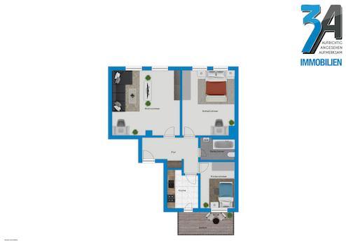 Auf ca. 70 m² erwartet dich eine großzügige Wohnfläche, die sich auf drei gut geschnittene Zimmer verteilt. Du hast die Wahl aus zwei gemütlichen Schlafzimmern, einem stilvollen Badezimmer und einem hellen Wohnzimmer, das zum Entspannen einlädt. Der Boden besteht aus hochwertigem Laminat und stilvollen Fliesen – perfekt, um deine eigenen Einrichtungsideen zu verwirklichen.