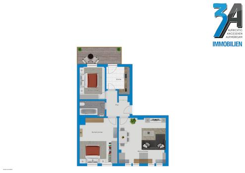 Auf ca. 70 m² erwartet dich eine großzügige Wohnfläche, die sich auf drei gut geschnittene Zimmer verteilt. Du hast die Wahl aus zwei gemütlichen Schlafzimmern, einem stilvollen Badezimmer und einem hellen Wohnzimmer, das zum Entspannen einlädt. Der Boden besteht aus hochwertigem Laminat und stilvollen Fliesen – perfekt, um deine eigenen Einrichtungsideen zu verwirklichen.