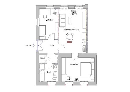Die offene Wohnraumgestaltung mit Küche schafft eine freundliche Atmosphäre, in der gesellige Abende, gemeinsames Kochen und entspannte Stunden garantiert sind. Das Schlafzimmer zum Innenhof bietet einen ruhigen Rückzugsort, der zum Träumen einlädt. Dank der durchdachten Raumaufteilung und der modernen Ausstattung ist diese Wohnung sofort bezugsfertig – ein echtes Juwel, das nur darauf wartet, von Ihnen zum neuen Zuhause gemacht zu werden. Hier können Sie direkt einziehen und das Leben in einem charmanten, historischen Gebäude in vollen Zügen genießen!
