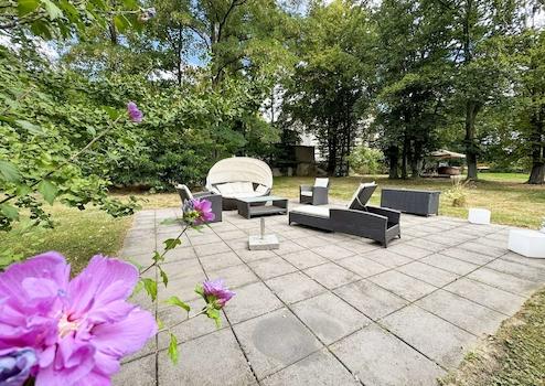 Das großzügige Grundstück mit seinem parkähnlichen Charakter unterstreicht die besondere Wohnqualität und schafft einen Rückzugsort mit viel Privatsphäre.