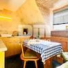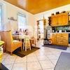 An diesen schließt sich eine großzügig geschnittene geflieste Küche, deren umfassend ausgestattete Einbauküche im Kaufpreis inkludiert ist.