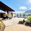 Vom rückseitig gelegenen Flur 2 haben Sie mittels Eingang 2 Zugang zur weitläufigen und teilüberdachten Traumterrasse mit Außenkamin/Grill.