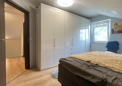 Das Dachgeschoss bietet drei Zimmer und ein Badezimmer, die sich flexibel als Schlaf-, Kinder- oder Arbeitszimmer nutzen lassen.