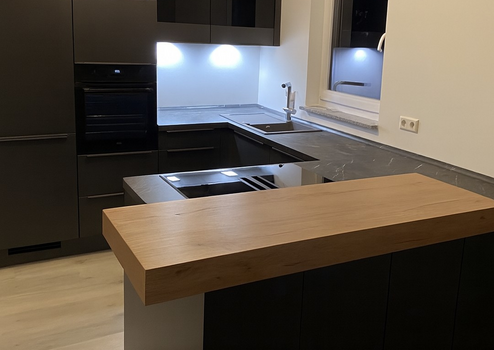 • Moderne Einbauküche mit Induktionsherd inklusive integriertem Muldenlüfter & hochwertigen Elektrogeräten
