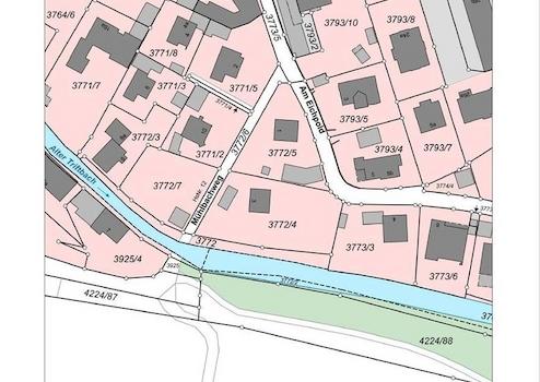 Es gibt keinen Bebauungsplan und die Bebauung in dem Mischgebiet orientiert sich an der Umgebung. Sowohl Doppelhäuser als auch Dreispänner sollten nach Rücksprache mit der zuständigen Behörde kein Problem sein - ebenso die erwähnten zwei Einfamlienhäuser. Auf dem Auszug des Katasteramt ist das Flurstück 3772 erkennbar, welches zusätzlich nutzbar ist - Details dazu gerne bei näherer Kontaktaufnahme.