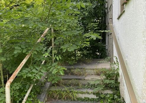 Das baufällige, teil-unterkellerte Haus mit 148 m² ist zweigeschossig und aus dem Jahr 1930 und schon lange unbewohnt.