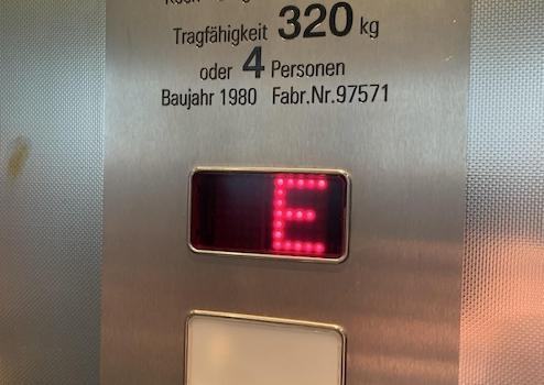 Das Gebäude beinhaltet einen Fahrstuhl (Baujahr 2006), der auf der Zwischenebene hält.