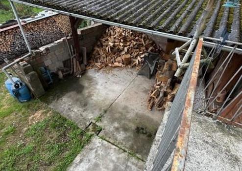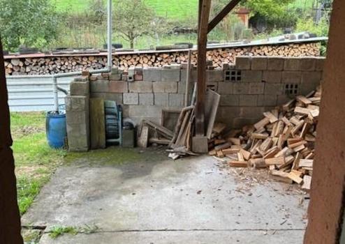 Zum Anwesen gehören außerdem ein weitläufiger Garten und ein Holzlager.
