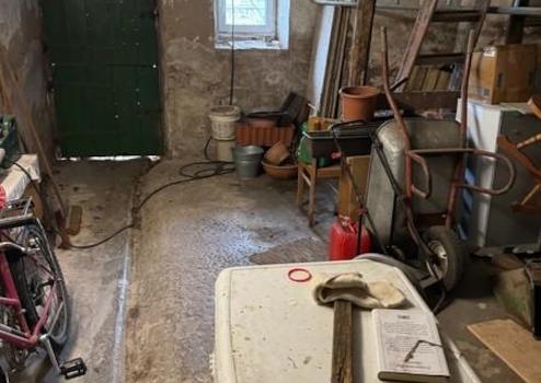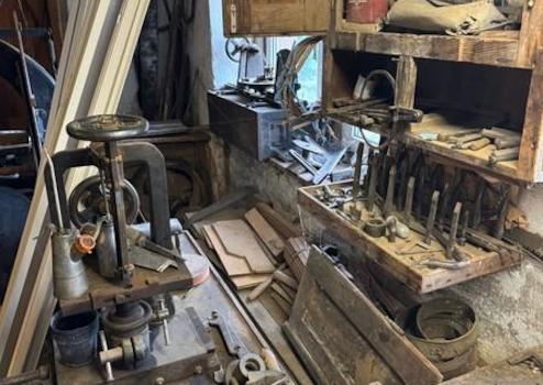 Im Teil-Kellergeschoss befindet sich eine Werkstatt mit mehreren funktionsfähigen Geräten, darunter ein Transmissionsantrieb mit Elektromotor, eine Hobelbank, Bandsäge, Schleifstein und eine Drechselbank. Ebenfalls im Keller untergebracht sind die Wasserversorgung sowie die Gasversorgung des Hauses. Außerdem liegt hier ein weiterer Kaminanschluss.