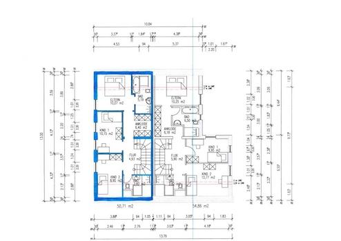 Die Wohnfläche ohne Dachgeschoßausbau beträgt 150,52 m² bzw. mit Dachgeschoßausbau 173 m². Der umbaute Raum beträgt 763 m³