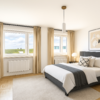Das großzügige Schlafzimmer ist nach Norden ausgerichtet und dank großer Fenster angenehm lichtdurchflutet. Es bietet viel Raum zur individuellen Gestaltung und lädt zum Entspannen ein.