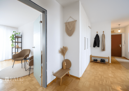 Das absolute Highlight dieser Wohnung ist zweifellos das großzügige Wohnzimmer von rund 22 m². Über den direkten Zugang zum sonnigen Südbalkon eröffnet sich Ihnen ein atemberaubendes Panorama mit Blick bis zu den Alpen – pures Münchner Lebensgefühl garantiert! Der Balkon ist zudem mit einer stilvollen Glasüberdachung ausgestattet.