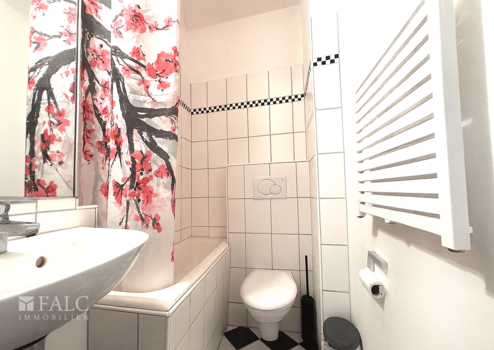 Das Badezimmer wurde im Jahr 2012 modernisiert und präsentiert sich mit hellen Fliesen, einer Badewanne sowie einer klaren, zeitlosen Ausstattung. Ebenfalls im Jahr 2012 erfolgte der Austausch der Fenster, wodurch die Wohnung technisch auf einem soliden Stand ist und ein gutes Maß an Wärme- und Schallschutz gewährleistet wird.