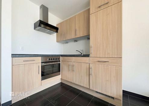 Große Fensterfronten sorgen in der gesamten Wohnung für reichlich Tageslicht und unterstreichen die helle, freundliche Atmosphäre. Die Küche ist funktional und praktisch geschnitten und bietet gleichzeitig genügend Raum für individuelle Gestaltungsideen, sodass sie sowohl für Hobbyköche als auch für Menschen mit einem Faible für moderne Küchendesigns bestens geeignet ist.