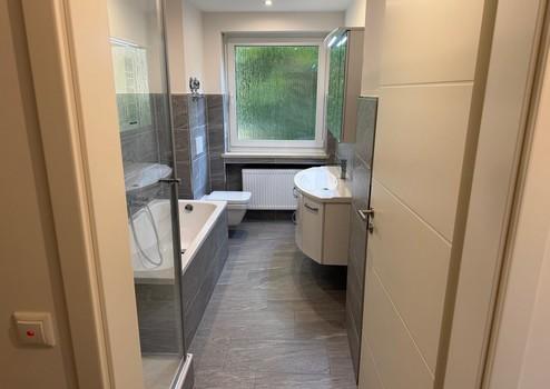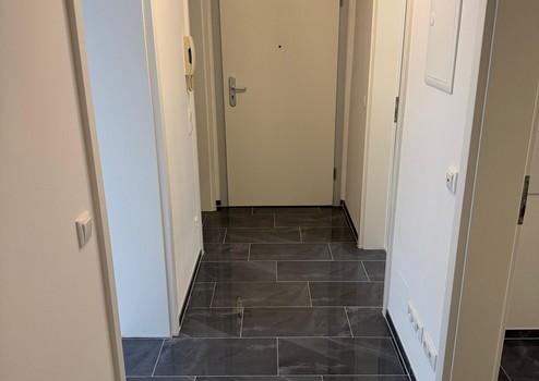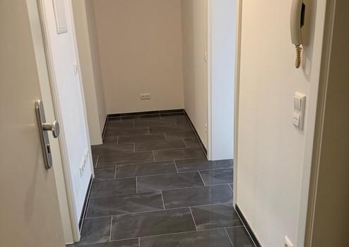 Die Wohnung wird als Erstbezug nach kompletter Renovierung angeboten, alle elektrischen und wasserführenden Leitungen wurden erneuert, neue edle Bodenfliesen in der Diele und Küche, in den Wohnräumen vornehmer Laminat in hellgrau. Die Türen und Türstöcke wurden ebenfalls erneuert, das neue moderne Bad mit hellgrauen, leicht strukturierten Fliesen wurde mit Badewanne und Dusche sowie einer Waschtischkombination mit Spiegelschrank ausgestattet, alles von namhaften Herstellern