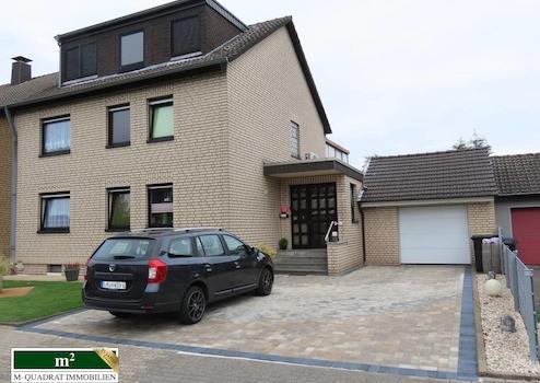 Neben einem äußerst gepflegten Vorgarten schließt sich eine akurat gepflasterte Zugangs- und Einfahrtsfläche an. Vor der Doppelgarage mit elektrischem Fronttor, in der zwei Pkw hintereinander eingeparkt werden können, befindet sich eine Stellfläche für bis zu drei weitere Fahrzeuge.
