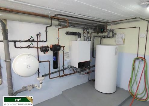 Nun führt der Weg über das Treppenhaus zurück schließlich in den ursprünglichen Kellerteil. Hier befindet sich in einem eigenen Raum die neue Heizanlage. In dem daneben angrenzende Raum sind die Waschmaschinen untergebracht. Wiederum hiervon zweigen zwei getrennt voneinander gehaltene Räume für Abstellzwecke ab. Der ursprüngliche Kellerteil und der des Anbaus sind durch eine gegenwärtig verschlossene Tür miteinander verbunden. Diese könnte jederzeit wieder geöffnet werden.