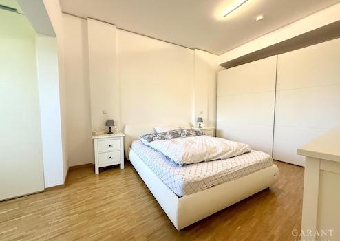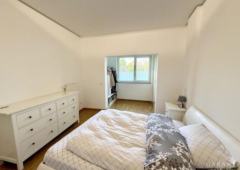 Das Schlafzimmer bietet mit seinem abgetrennten, begehbaren Ankleideraum nicht nur Komfort, sondern auch ein Stück Luxus im Alltag. Das Badezimmer begeistert durch seine stilvolle Kombination aus Natursteinboden, modernen Fliesen, einer Dusche und einer gemütlichen Badewanne ein Ort zum Abschalten und Wohlfühlen.