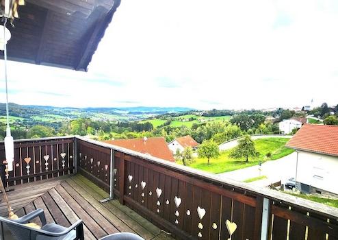 * großer Balkon und Terrasse mit unverbauten Fernblick