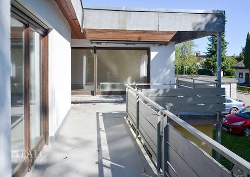 • Großer Balkon im Erdgeschoss mit schönem Ausblick ins Grüne
