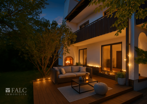 + Zwei Terrassen: Südterrasse mit Außenkamin und hintere Terrasse mit Gartenzugang