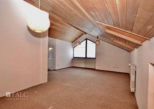 Im Dachgeschoss steht eine großzügige Fläche für individuelle Wohnträume zur Verfügung. Eine kleine Küchenzeile sowie ein Duschbad machen diesen Bereich besonders vielseitig nutzbar – ob als Gästezimmer, Atelier oder Hobbyraum.