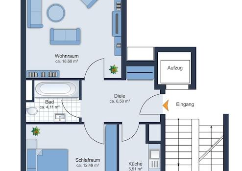 - Ca. 50 m² Wohnfläche im 4. OG mit Aufzug