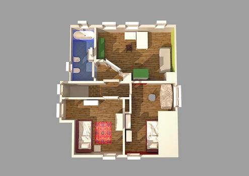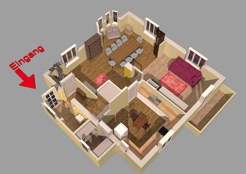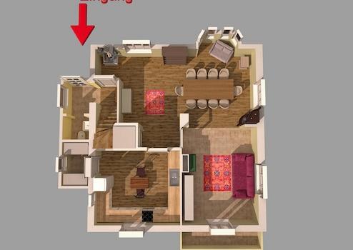 - 3 Schlafzimmer, Wohnzimmer, Esszimmer, Küche, 2 x Bad mit Badewanne, Gäste-WC, Balkon, Terrasse, Keller und Dachboden