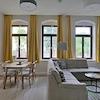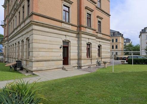 ### Please note the availability date! Bitte das Verfügbarkeitsdatum beachten! ### neu möblierte Wohnung im Hochparterre einer denkmalgeschützten Stadtvilla mit Garten; separater Hauseingang mit Terrasse; WLAN und Reinigungsservice inklusive; großes Wohnzimmer mit Eckcouch, TV, Esstisch und offener Küche; großes Schlafzimmer mit Doppelbett, Sideboard und Tisch; kleines Schlafzimmer mit Einzelbetten und Kleiderschrank; großes Bad mit bodentiefer Dusche, Wanne und WC; großer Wohnungsflur mit Garderobe; Hauswirtschaftsraum mit Waschmaschine und Bügelbrett; Pauschalmiete 2.000,00 Euro bei 1-2 Personen (USt. ausweisbar!); wird an max. 3 Personen vermietet; Kaution 2.500,00 Euro; Endreinigung 80,00 Euro; Mindestmietdauer 2 Monate; Pflichtangaben zum Energieausweis: Entfällt, Kulturdenkmal gemäß Säschsisches Denkmalschutzgesetz (SächsDSchG)
