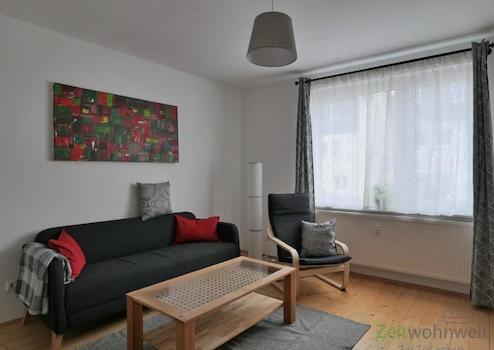 ### Please note the availability date! Bitte das Verfügbarkeitsdatum beachten! ### neu möblierte 2-Zimmer Wohnung im Hochparterre; WLAN inklusive; Waschmaschine im Keller; helles Wohnzimmer mit Sofa, Schrankwand Esstisch und Beistelltisch; Schlafzimmer mit Doppelbett und Kleiderschrank auf der Gebäuderückseite; Wohnküche mit Esstisch, Eckküche und Ausgang zum Balkon; Bad mit Wanne und WC; Wohnungsflur mit kleiner Garderobe; Endreinigung Mietersache; Pauschalmiete 1.060,00 Euro (bei max. 1 Person); Kaution 1.400,00 Euro; Mindestmietdauer 3 Monate; Pflichtangaben zum Energieausweis: Energieausweis gültig bis: 11.06.2034; Baujahr Gebäude: 1938; Energieausweis: nach Bedarf; Energieverbrauch: 284.14 kWh/(m²a); Energieeffizienzklasse: H; Primärer Energieträger: Erdgas