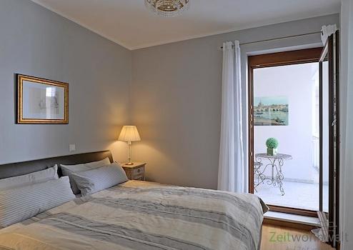 ### Please note the availability date! Bitte das Verfügbarkeitsdatum beachten! ### möbliertes Dachgeschoss-Apartment mit breiter Fensterfront; WLAN inklusive; großer Wohnraum mit breitem Bett, Kleiderschrank, Wand-TV, ...