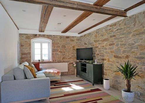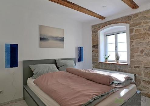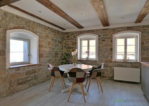 ### Please note the availability date! Bitte das Verfügbarkeitsdatum beachten! ### außergewöhnliche möblierte Wohnung in einem denkmalgeschützen 3-Seiten-Hof, teilweise mit Natursteinwänden; WLAN inklusive; großes freundliches Wohnzimmer mit Eckcouch, Kommode und TV links im Wohnbereich; zentraler Esstisch vor der Kochinsel, neue komplett ausgestattete Einbauküche; Vorderes Schlafzimmer mit Doppelbett und Kleiderschrank; hinteres Schlafzimmer mit Einzelbetten, großes Bad mit Dusche, Eckbadewanne, Waschmaschine und WC; Wohnungsflur mit Garderobe, Reinigungsservice inklusive; Sitzecke im Innenhof (kein Foto!); Pauschalmiete 1.900,00 bei 1 Person; wird an max. 3 Personen vermietet; Kaution 2.500,00 Euro; Mindestmietdauer 3 Monate; Endreinigung Mietersache; Pflichtangaben zum Energieausweis: Entfällt, Kulturdenkmal gemäß Säschsisches Denkmalschutzgesetz (SächsDSchG)