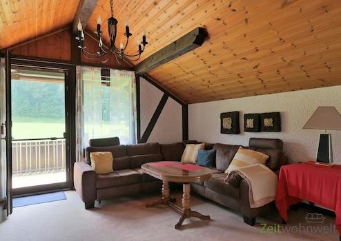 ### Please note the availability date! Bitte das Verfügbarkeitsdatum beachten! ### höbsche möblierte Wohnung in ruhiger Wohnlage in Waldkappel; WLAN; großes Wohnzimmer mit modernen rustikalen Möbeln, Sofa, Esstisch, ...