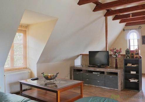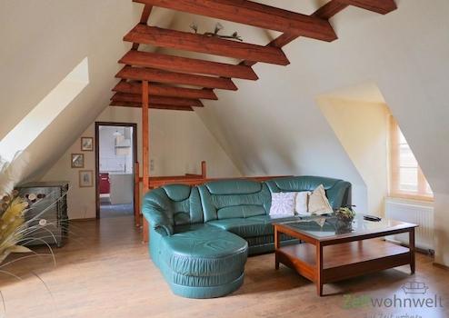 ### Please note the availability date! Bitte das Verfügbarkeitsdatum beachten! ### hübsches möbliertes Apartment im 3.Obergeschoss = Dachgeschoss, unweit zur Jenaer Innenstadt; helles Wohnzimmer mit Couch, Sesseln, ...