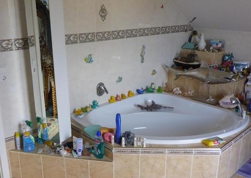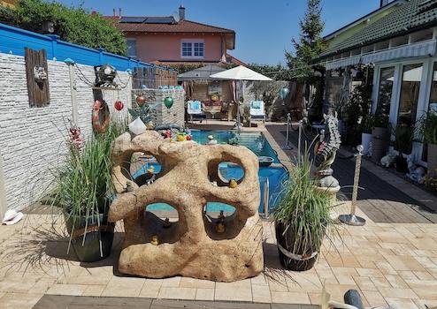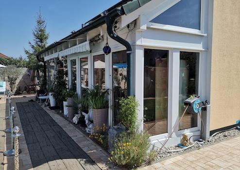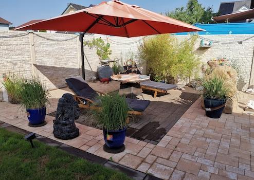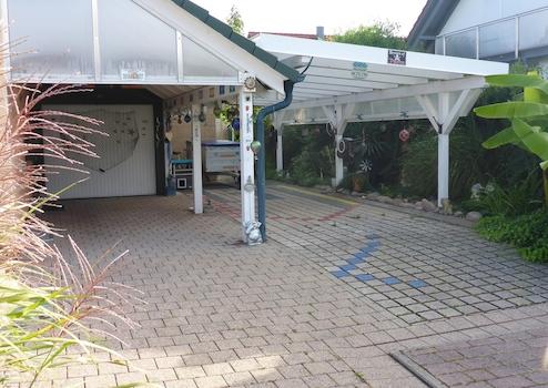 Das Haus befindet sich in einer verkehrsarmen Seitenstraße. in Sinzheim - Kartung . Sehr Ruhige Lage, Garage und Carport für 3 PKW Standplätze, überdacht, Sonne von morgens bis Abends, die gesamte Garten/ Pool (9x3 m mit Wasserfall) Aussenanlage ist in einem sehr gepflegten, pflegeleichtem Zustand. Pavillon mit Sitzbereich, Olivenbaum 120 Jahre alt, Pavillon mit Whirlpool, traumhaft angelegt mit Palmen und Pampasgräsern, viel Platz zum Grillen und feiern, umgeben mit einem Betonsichtschutzzaun in mediterranen Stil, Relaxen und genießen, für Ruhesuchende.