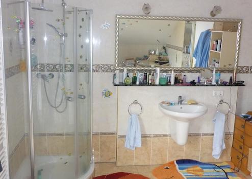 4 Zimmer - Galerie, Einbauküche, Schlafzimmer & Ankleidezimmer, offenes Büro, Badezimmer mit Dusche und Eckbadewanne, Gäste WC mit Dusche, Isolierverglasung, Gas Zentralheizung, Wohnzimmer und Wintergarten mit Sternenhimmel, offenem Kamin (Marmor), Wintergarten mit Fußbodenheizung Poolanlage beheizt (40000 Liter) PV Anlage mit Batteriespeicher 10000 Kw, Whirlpool, LED Beleuchtung, HiFi Lautsprecher im Innen & Aussen Bereich, Terasse, Keller mit Waschraum, Hausw-Raum, großer Hobbyraum, Nutzfläche 70 qm, großer spez. ans Haus gebauter Carport, Garage mit Werkstattecke
