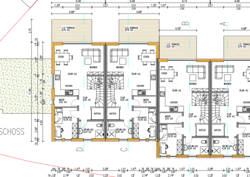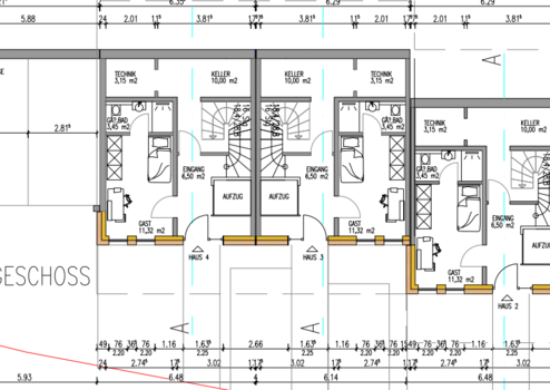Hier entstehen 4 moderne helle Wohnhäuser in massiver Ausführung (Stein auf Stein) mit guter Ausstattung sowie attraktiven Grundrissen. Eine gute Innenausstattung, moderne Heiztechnik mit einer Wärmepumpe in Verbindung mit Fußbodenheizung, elektrische Rollläden sowie eine kontrollierte Wohnraumbelüftung mit Wärmerückgewinnung sind vorgesehen. Der Innenausbau ist mit attraktiven Fliesen sowie Parkettböden geplant. Hier können Wünsche von Kaufinteressenten noch Berücksichtigung finden. Die Errichtung erfolgt unter Berücksichtigung moderner Energiestandards als KFW 40 Energiesparhaus sowie einer guten Ausstattung. Die Kombination von moderner Technik und hochwertiger Isolierung führt zu sehr günstigen Heizkosten.