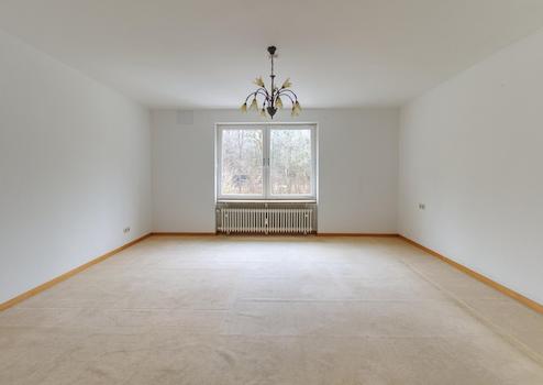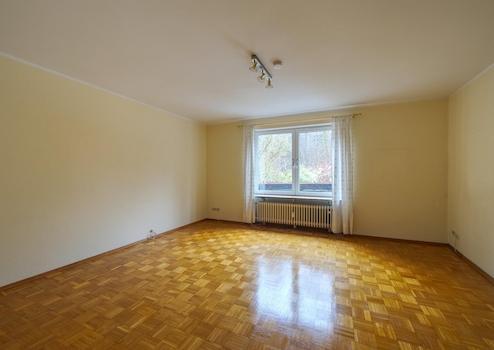 Das nach Süden ausgerichtete Wohnzimmer ist mit einem Parkettboden ausgestattet und verfügt über einen Kaminanschluss.
