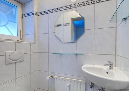 Im Erdgeschoß befinden sich Wohnzimmer, Küche und ein Gäste-WC.