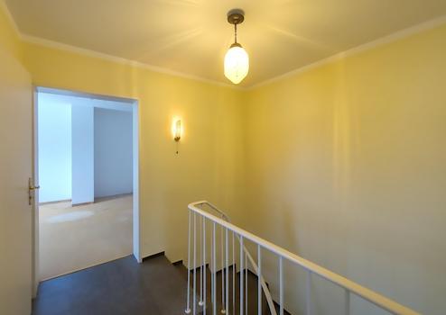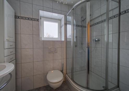 Im Obergeschoß befinden sich das Schlafzimmer, das Kinder- oder Arbeitszimmer sowie ein Badezimmer mit Dusche, Waschtisch und WC.