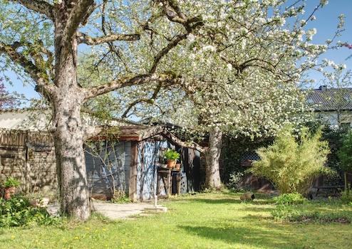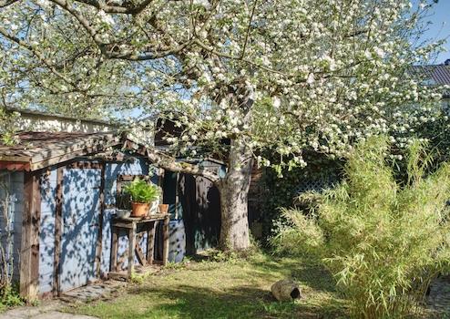Das Juwel des Objets ist der großzügige, fast uneinsehbare hintere Teil des Gartens. Mit seinen zwei großen Apfelbäumen sowie zwei gepflasterten Sitzecken lädt der Garten auch an heißen Sommertagen zum verweilen ein.