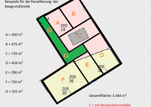 Optionale weitere Bebauung im hinteren Grundstücksteil (ca. 1.460 m²)